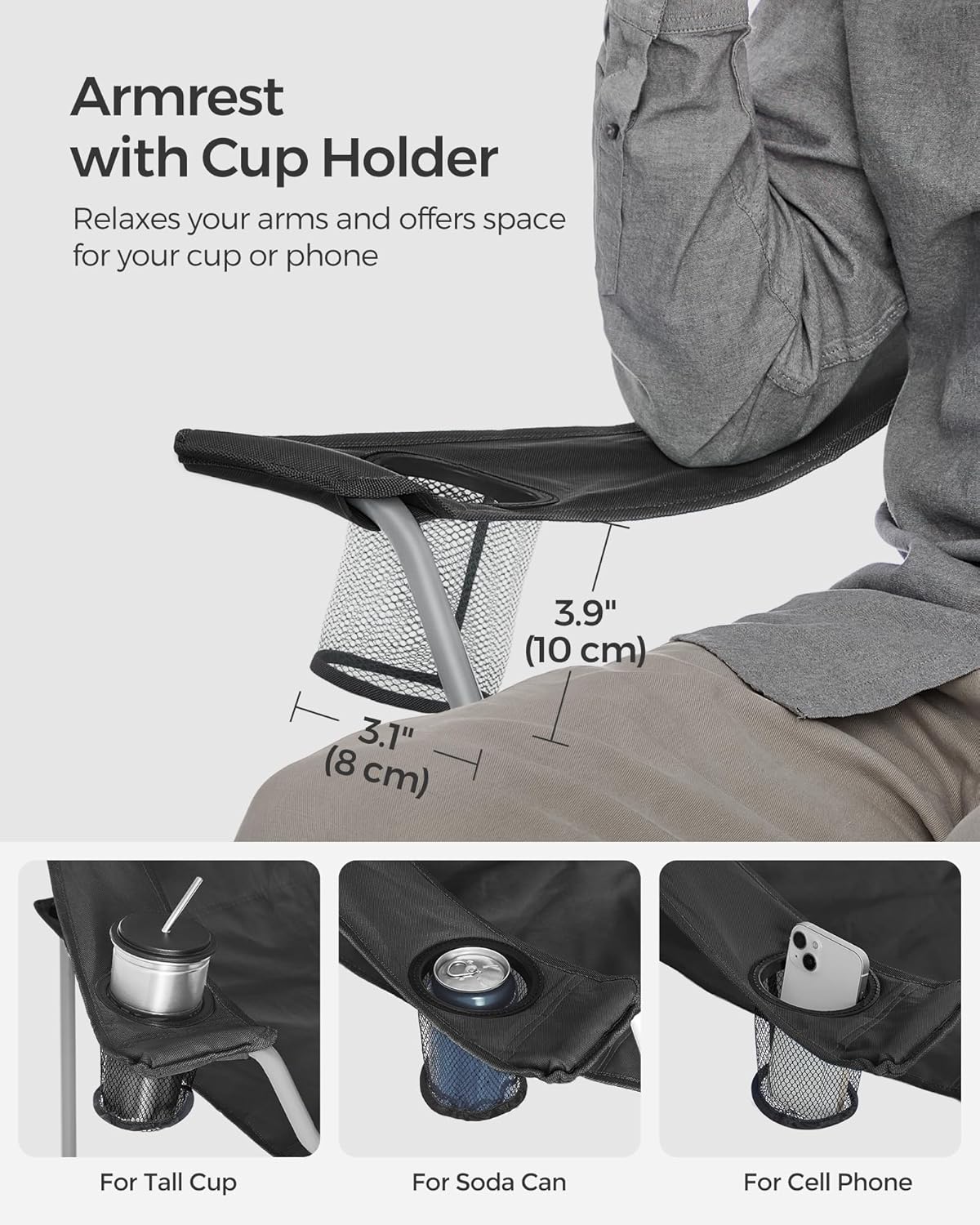 Equipped with a convenient cup holder, you can keep your favorite beverage within easy reach, allowing you to stay refreshed while you unwind. The folding design makes these chairs easy to transport and store, perfect for on-the-go lifestyles.